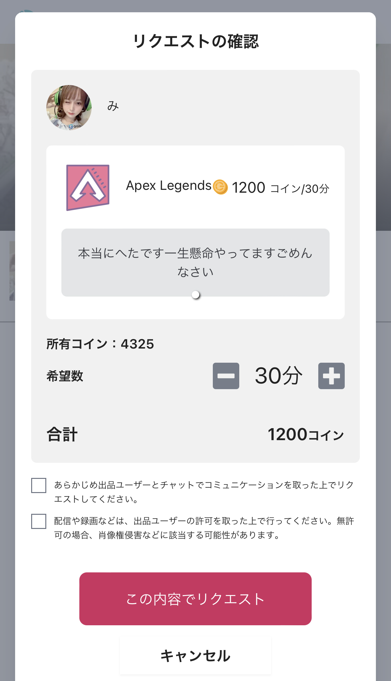 SNSでの募集も利用していましたが、暴言を言ったり、マナーが悪い人がいるのが難点でした。その点、このサービスはマナーの良いゲーマーさんしかいないので安心できますね。ただ、人気のあるゲーマーさんは予定が埋まっていることが多いのが残念です。自分の好みに合ったゲーマーさんをおすすめしてくれる機能などがあるとさらに使いやすくなるかなと思います。